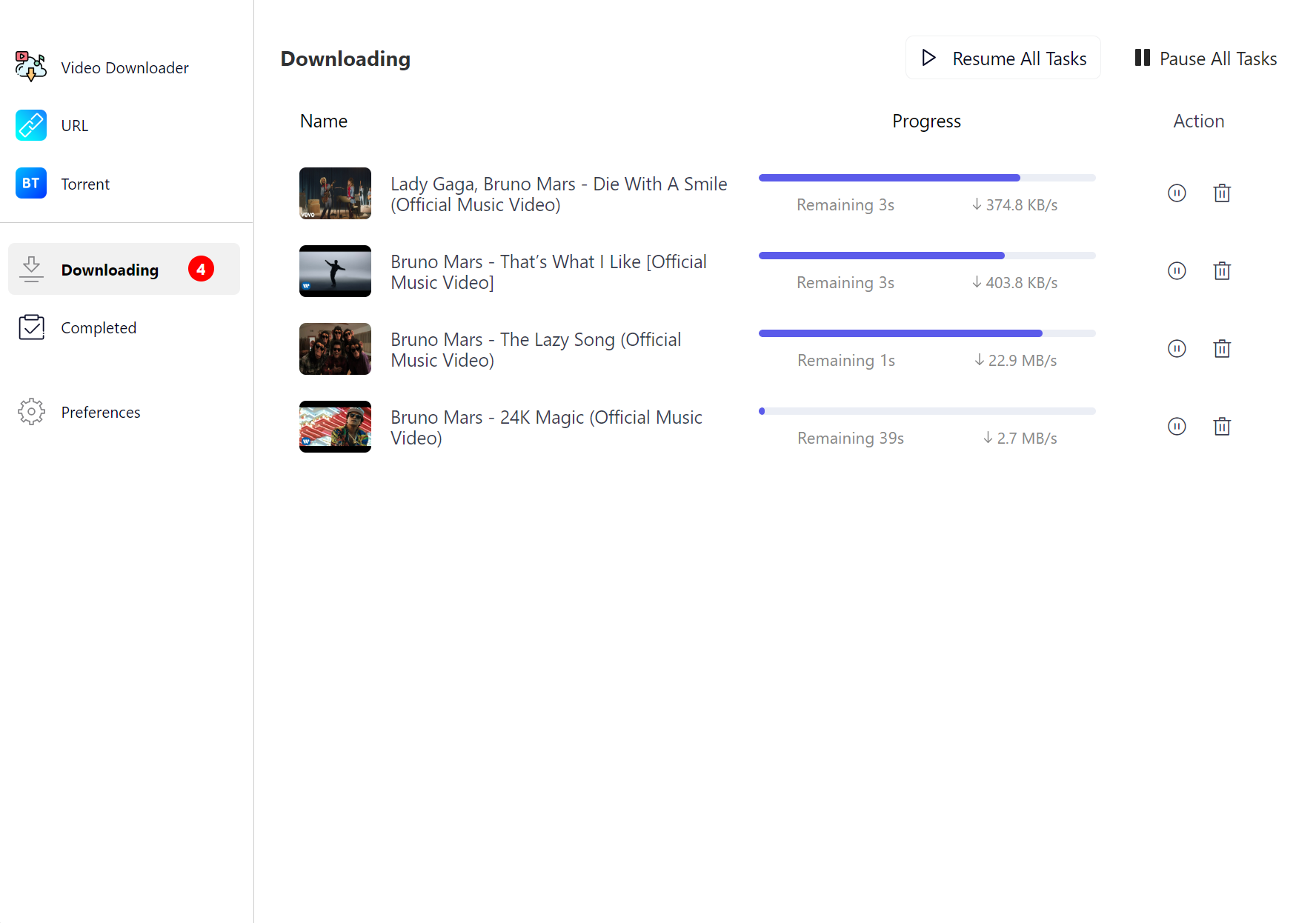 Efficient torrent and magnet link downloads with DHT support and advanced torrent management.